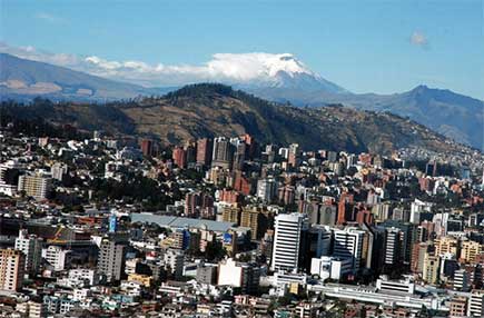 Quito, Equador is in the mountains at 9,350 feet above sea level. It is the second largest city in Equador with a population over 2 million.